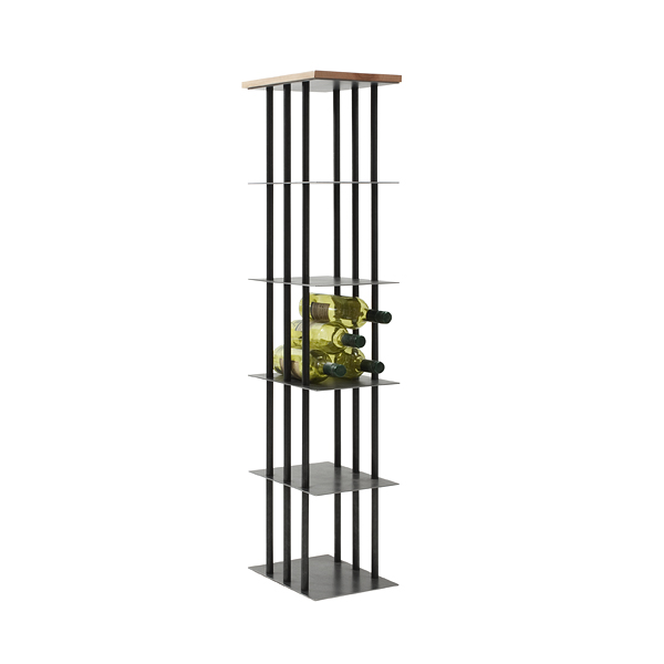 Weinregal für 25 Flaschen Rohstahl gewachst und Holzabdeckung.